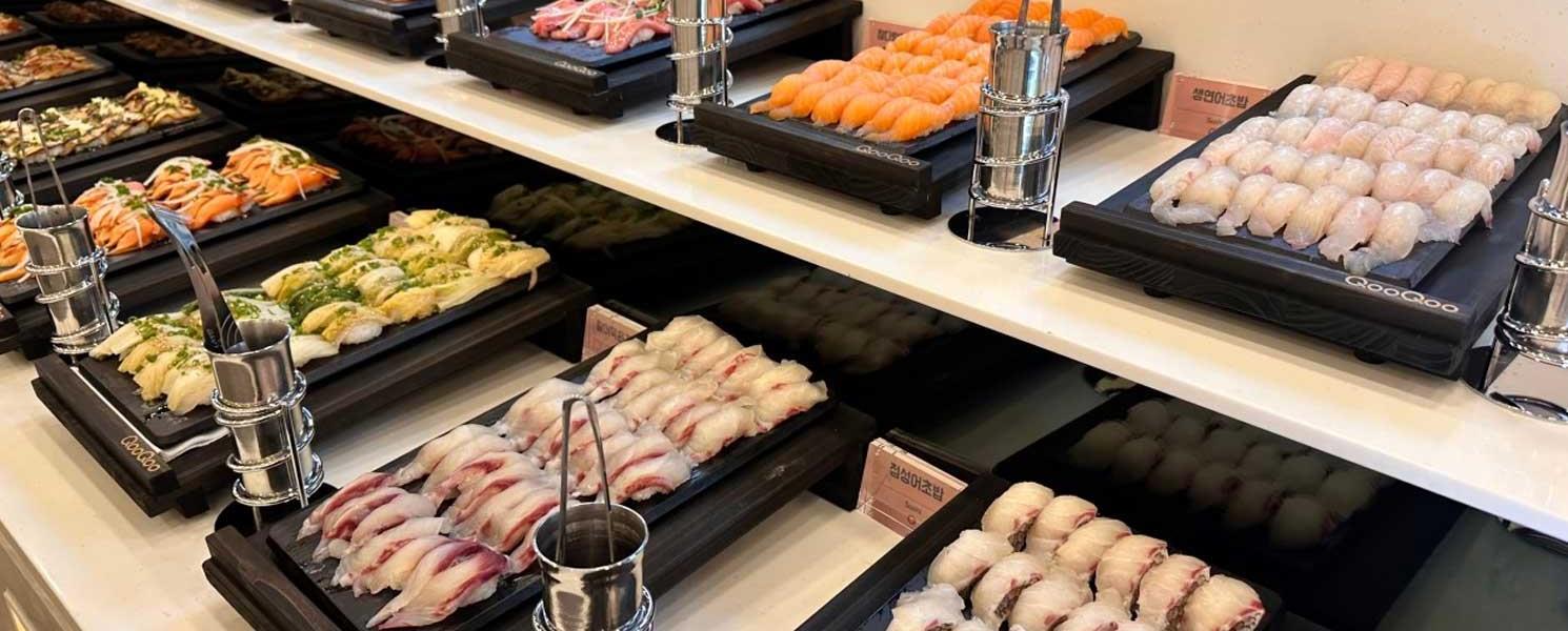 QooQoo 是一家超人氣的壽司海鮮百匯吃到飽餐廳,提供豐富多樣的壽司選擇,讓人目不暇給,並匯集肉類、海鮮、生魚片、炸物,以及義式、美式料理;另有甜點、冰品、蛋糕、鬆餅與各式飲料無限暢飲。餐點選擇多元、CP 值高,是韓國人氣吃到飽首選之一,想大快朵頤,來這裡準沒錯。