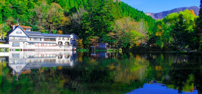 金鱗湖位於大分縣由布院,是一個神祕而美麗的湖泊。湖底有溫泉水湧出,因此湖水溫度較高,在氣溫較低的時節,湖面會因為溫差而產生夢幻般的霧氣,彷彿仙境。湖光與倒映在湖面的景色相映成趣時,景色最為動人。