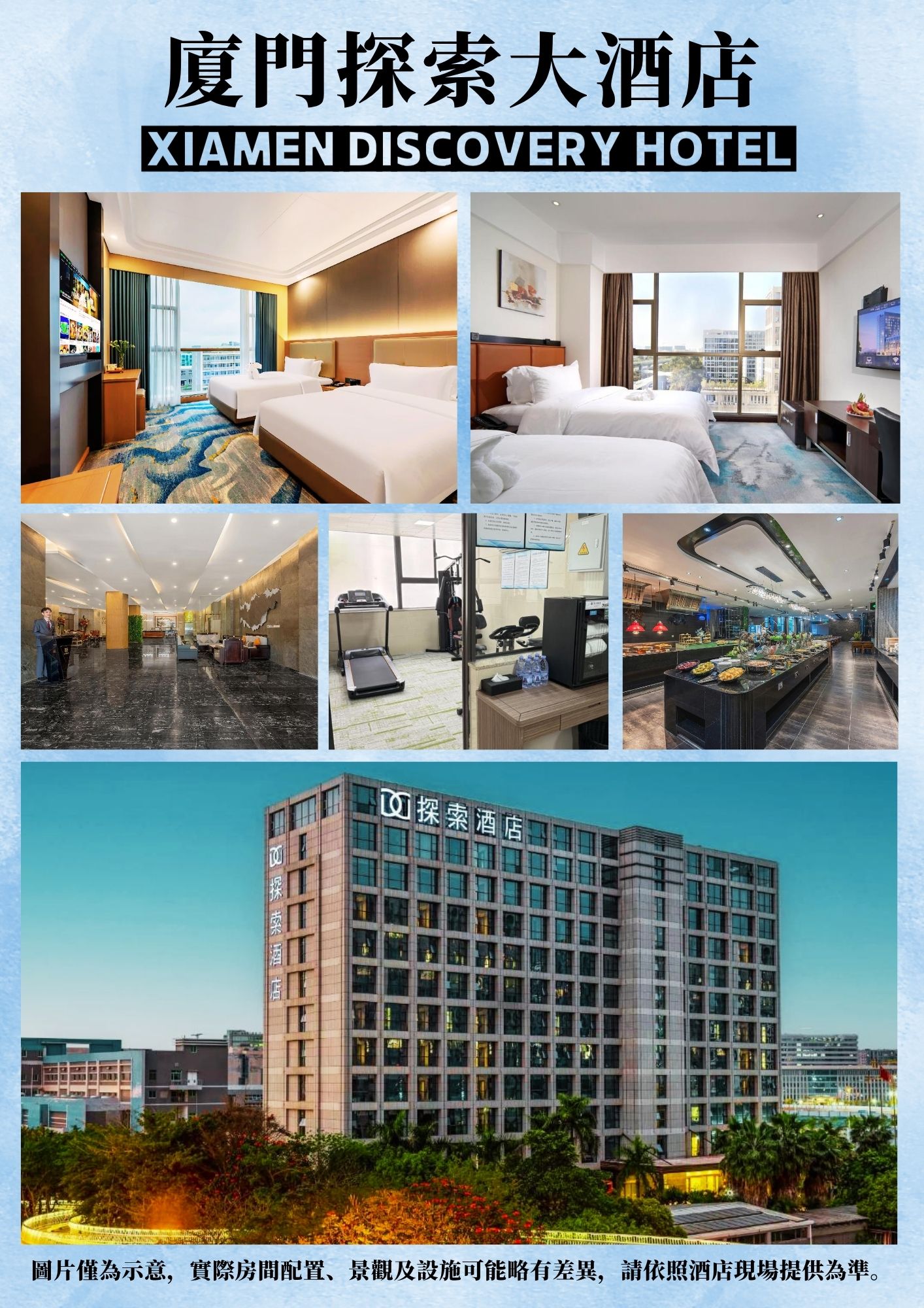 廈門探索大酒店或廈門希爾頓花園酒店或廈門瑞頤逸居酒店或同級
