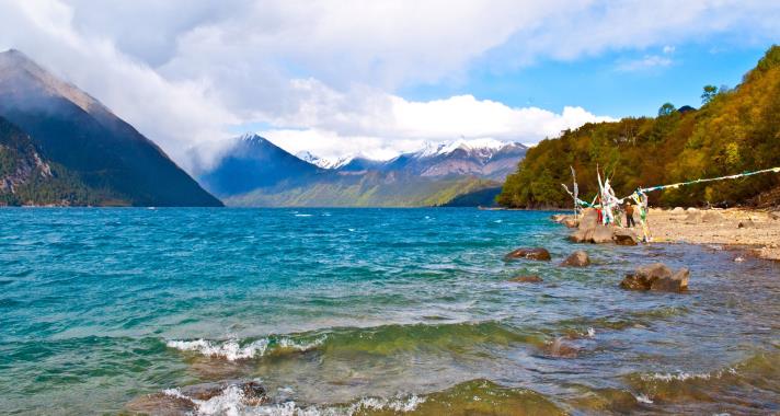 巴松措位於巴河上游的高峽深谷裡,形狀如鑲嵌在高峽深谷中的一輪新月,沿途景色秀美,藏民族村落呈現獨有的特色和迷人的景觀;巴松措湖是藏傳佛教寧瑪派(紅教)的聖湖,湖心有座古老的錯宗島與千年寺廟,充滿神秘氛圍。