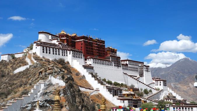 布達拉宮是拉薩的象徵,是了解西藏佛教歷史和佛教藝術的必遊之處;初建於西元七世紀,整個宮殿分紅宮和白宮兩部分,其金頂為印度傳統式樣、金碧輝煌,以其精美的壁畫、複雜的建築結構及歷代達賴的執政地而聞名海外。