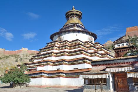坐落在年楚河上游,是一座歷史悠久、名勝集中的歷史名城;元朝時江孜修建了白居寺,白居寺的標誌菩提塔,是由近百間佛堂依次重疊建起的塔,人稱「塔中有塔」;塔內佛堂、佛龕以及壁畫上的佛像總計有十萬個,因而得名十萬佛塔。